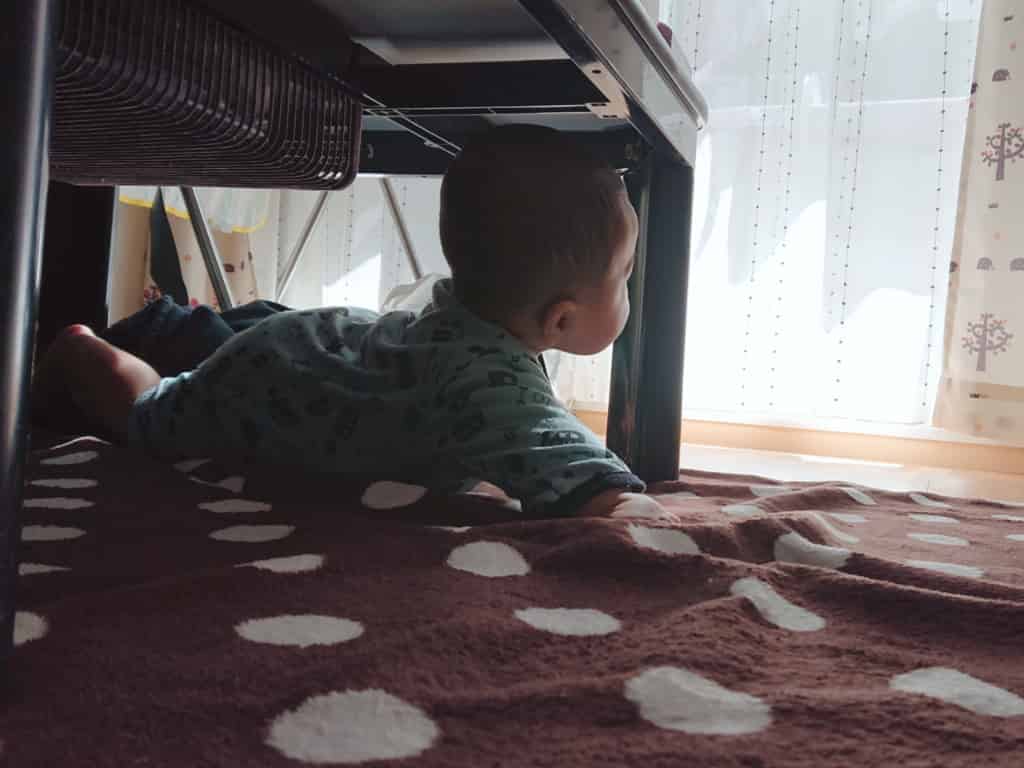 この1ヶ月で、お座り~ハイハイ~つかまり立ち~つたい歩きを少しだけ出来るようになり、彼の行動範囲がめちゃくちゃ広がったので、